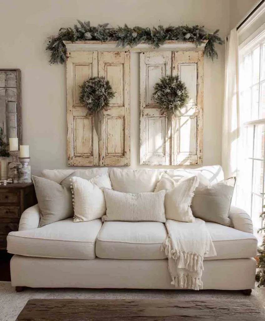 One weekend, I dragged home two chippy white shutters from a salvage yard and hung them above my couch. It made the space feel architectural and aged in the best way.