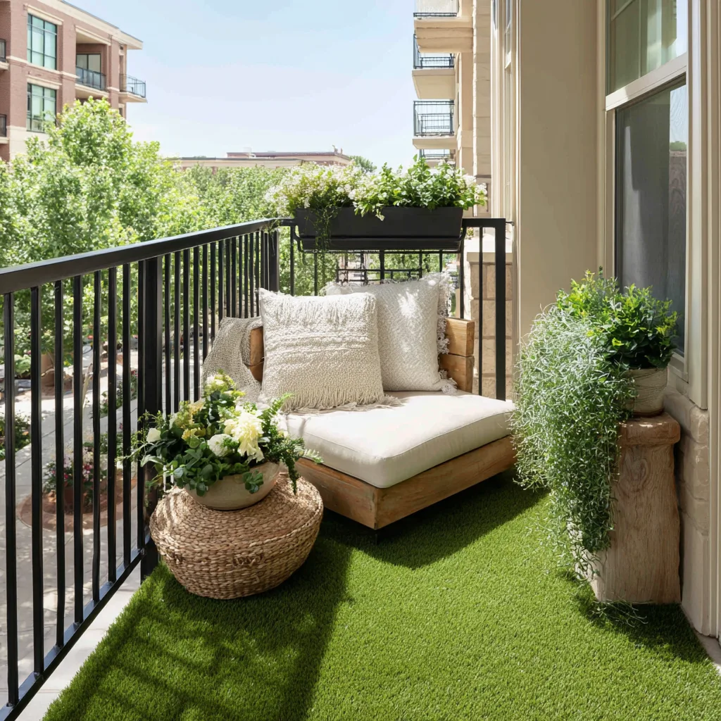 Your balcony doesn’t need to be big to be beautiful. With just a few thoughtful touches, from artificial grass to a cozy swing chair, you can turn it into your favorite spot in the whole apartment.