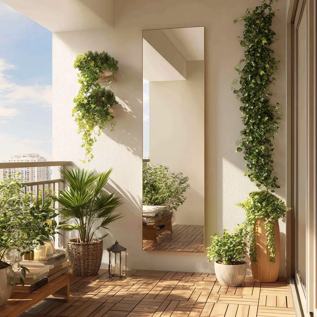 I saw this trick in a home tour video and immediately copied it—adding a mirror makes my balcony feel twice as big!