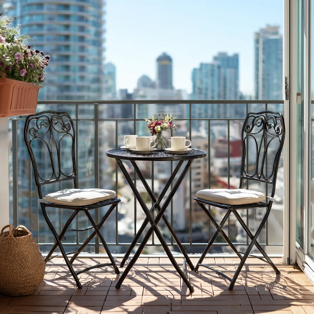 ☕ My Pick: I got a mint-green bistro set that folds flat. It adds just enough charm and color.