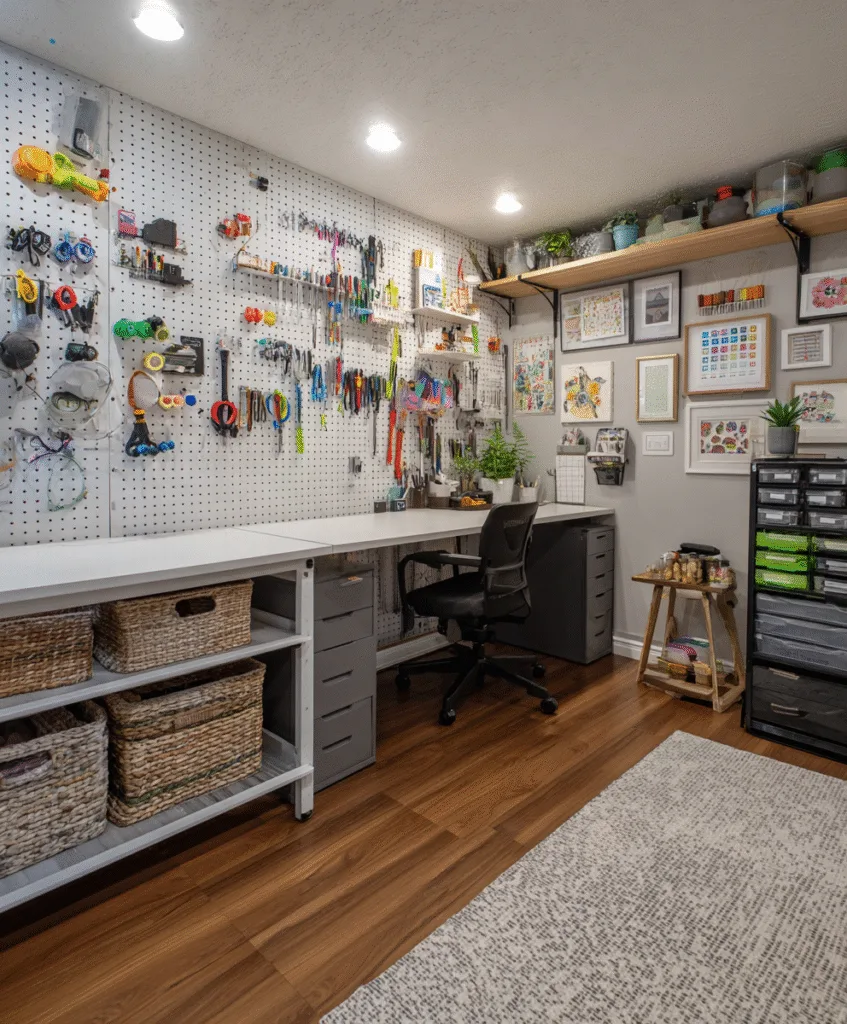 Let me tell you, pegboards are lifesavers. I covered one whole wall with pegboard panels, and now I hang everything, scissors, pens, tools, even art.