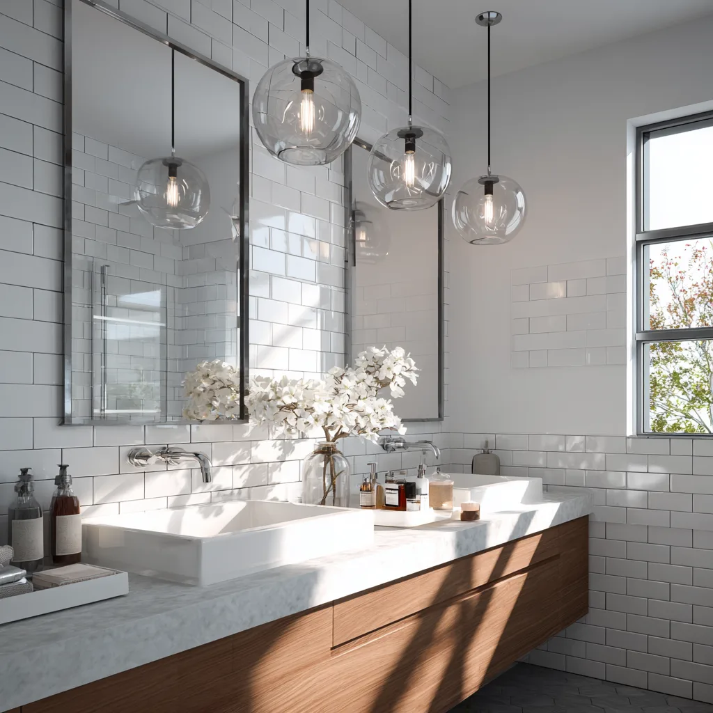 Wall sconces are super flexible. You can use them on either side of your vanity, near the tub, or even by the entrance for that upscale hotel vibe.