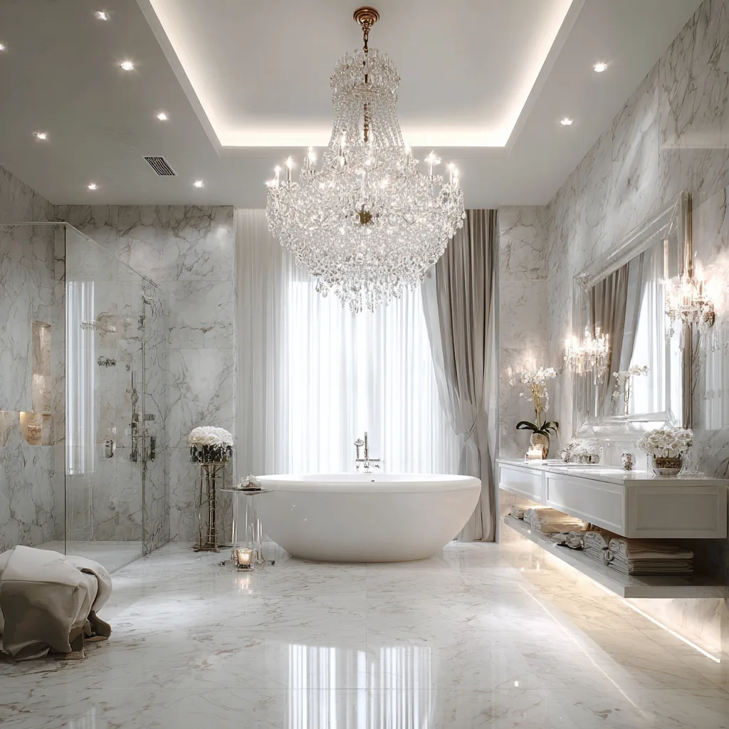 - Can act as the main focal point above a tub or in the center of the ceiling.