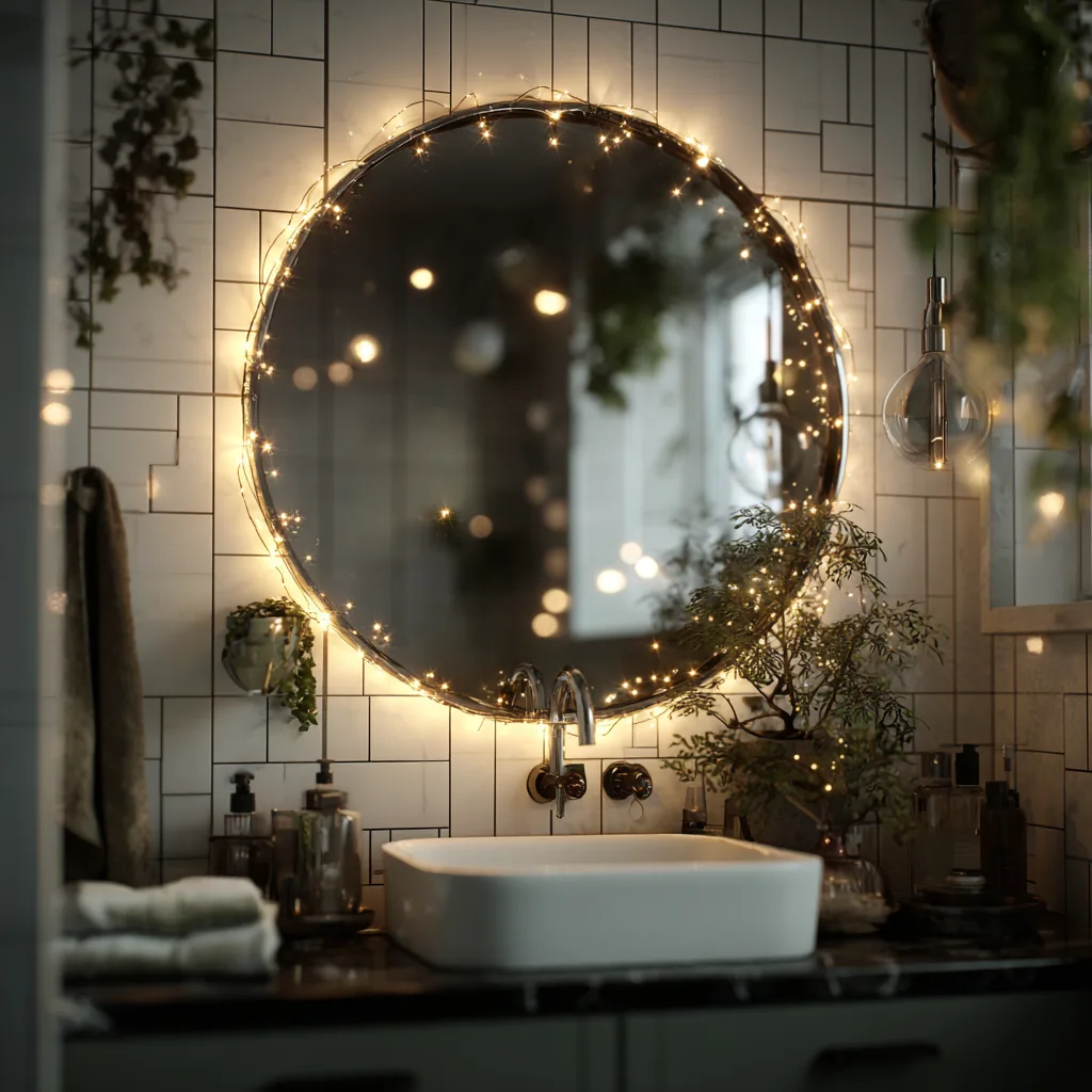 Fairy lights aren’t just for bedrooms anymore. I used waterproof fairy string lights around a mirror frame and, no joke, it felt like a spa meets Pinterest dream.
