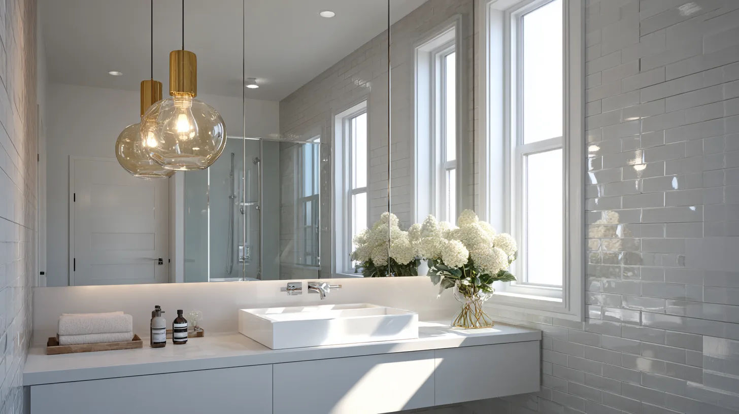 In the bathroom, it’s about setting the mood, creating functionality, and making your space feel larger and more luxurious.