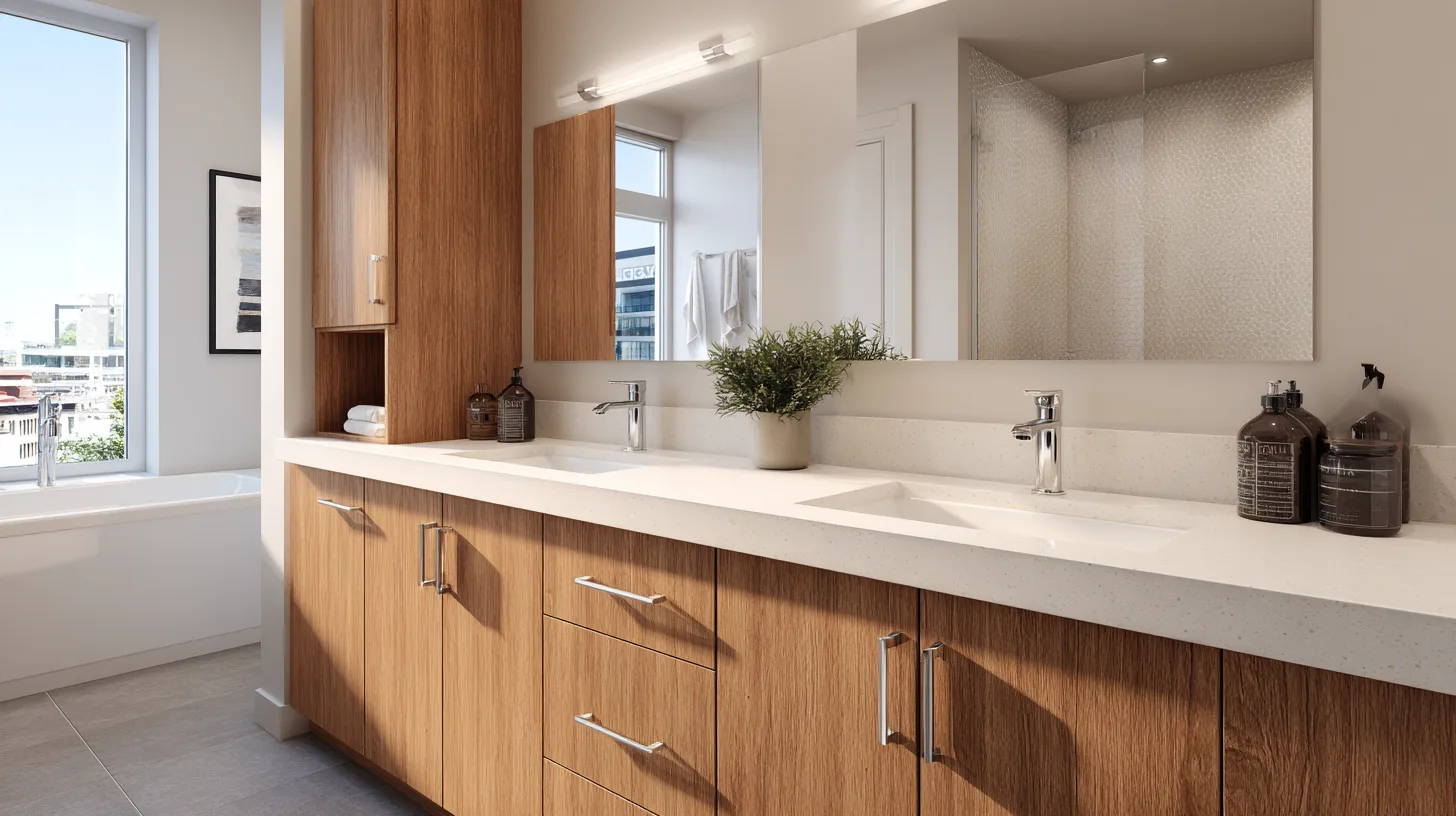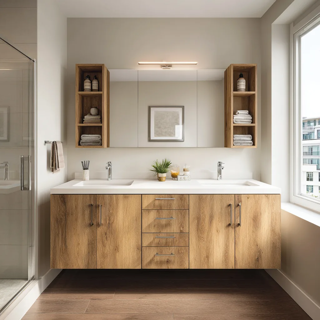 - Support your lifestyle, like offering dual sinks for couples or compact shelving for minimalists