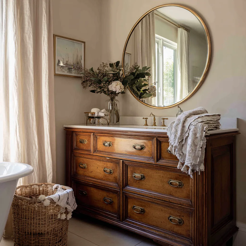 I found an old wooden dresser at a flea market and converted it into a vanity, it was the perfect way to add a bit of history to my bathroom.