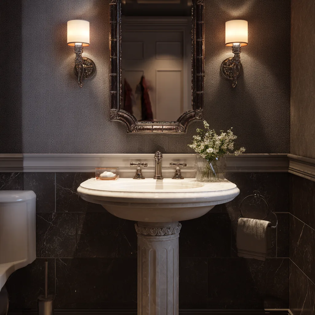 For a traditional and elegant touch, go for a pedestal vanity. This style gives your bathroom a classic, timeless vibe while providing the illusion of more space.