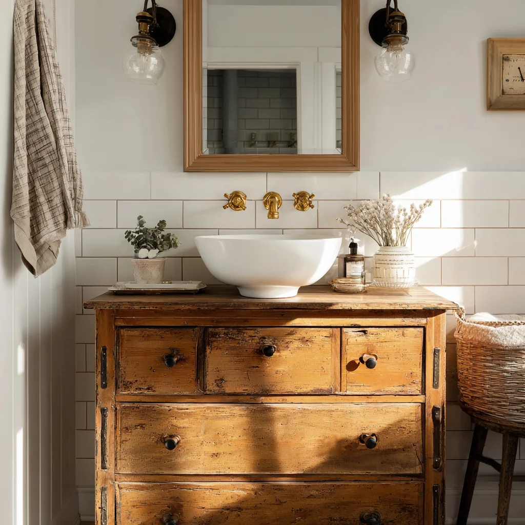 For a unique, eclectic touch, consider using an antique cabinet as your bathroom vanity. The mix of old and new can create a one-of-a-kind statement piece that adds character and charm to your space.