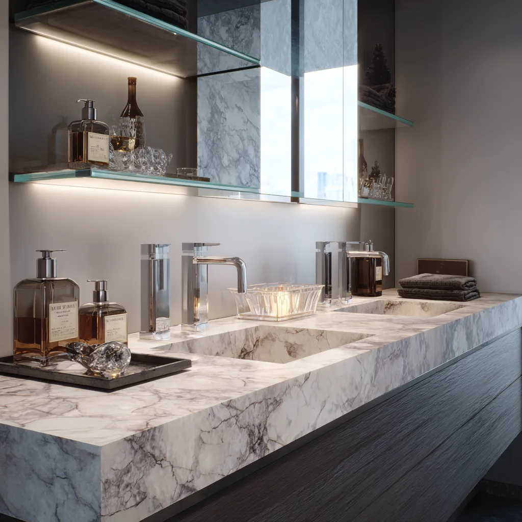 Okay, let’s talk luxury: a marble-top vanity is like the spa upgrade your bathroom didn’t know it needed.