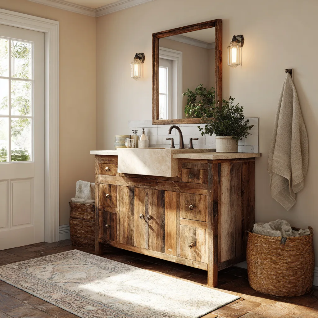 - Combine with vintage-style lighting and metal mirrors to enhance the industrial look