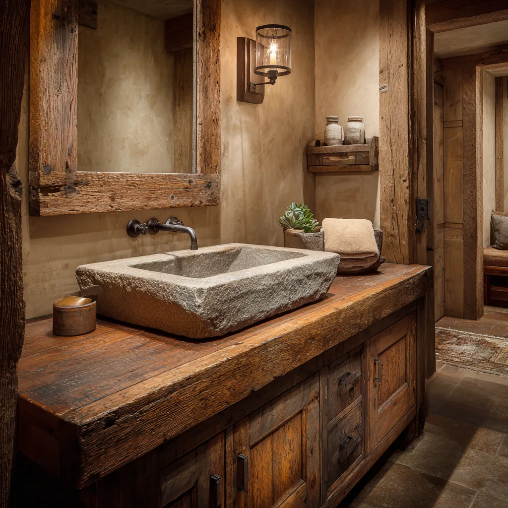 This one’s for all my nature-loving, raw-material fans out there. A rustic wood vanity brings warmth and texture like no other.