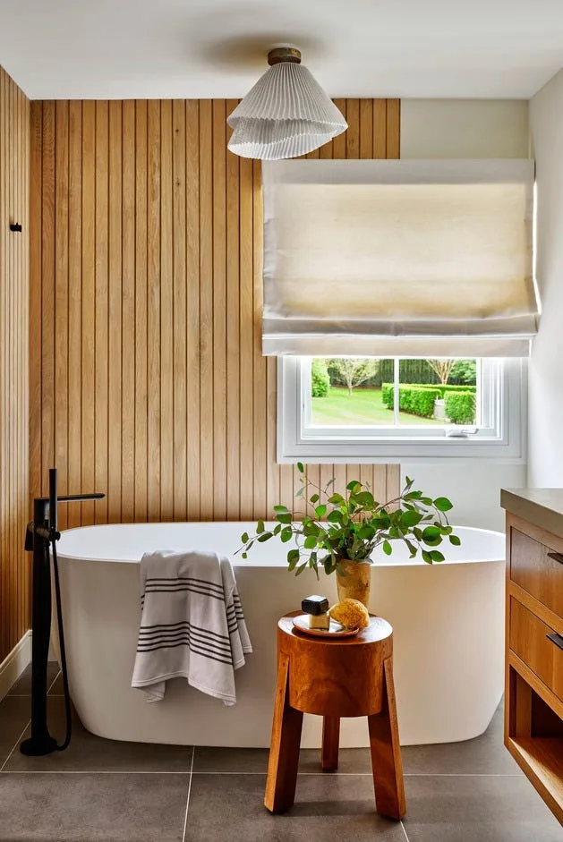 I’ve always loved the clean, spa-like feel wooden wall panels bring. If you’re looking for a way to make your bathroom feel inviting, adding vertical wooden slats is a game-changer.