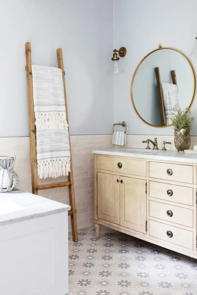 If you’re into a rustic vibe, go for a wooden ladder as a towel rack. It’s simple but so stylish!