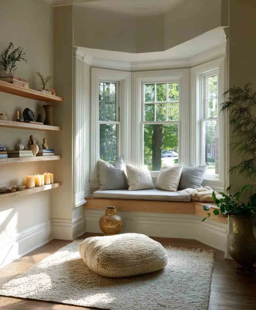 If you’re craving a quiet space to unwind, your bay window is ideal. The natural light and soft vibes make it perfect for mindful moments.