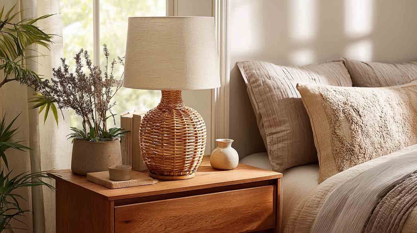 Think rattan, bamboo, linen, or raw wood, perfect for bringing the outside in. I love the relaxed, earthy vibes they create. It’s like instant zen in lamp form.