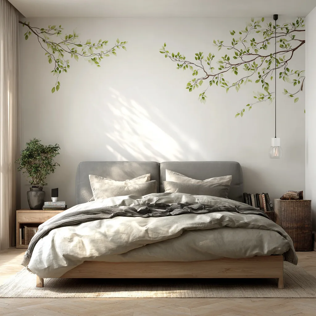 When I was on a tight budget, wall decals came to the rescue. I picked a leafy branch design and arranged it like it was growing above the bed.