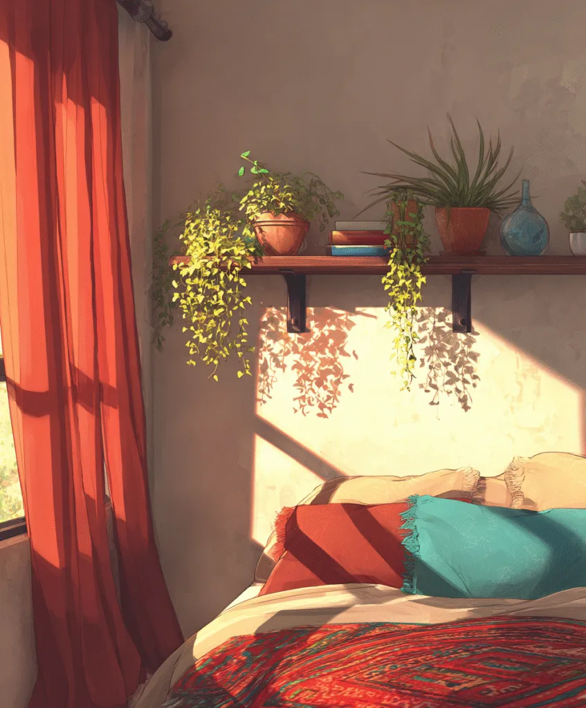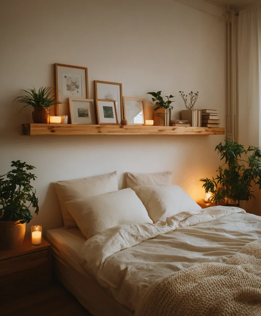 Floating shelves saved me. I added one narrow wood shelf above the bed and suddenly had room for small decor. It felt cozy but not cluttered.