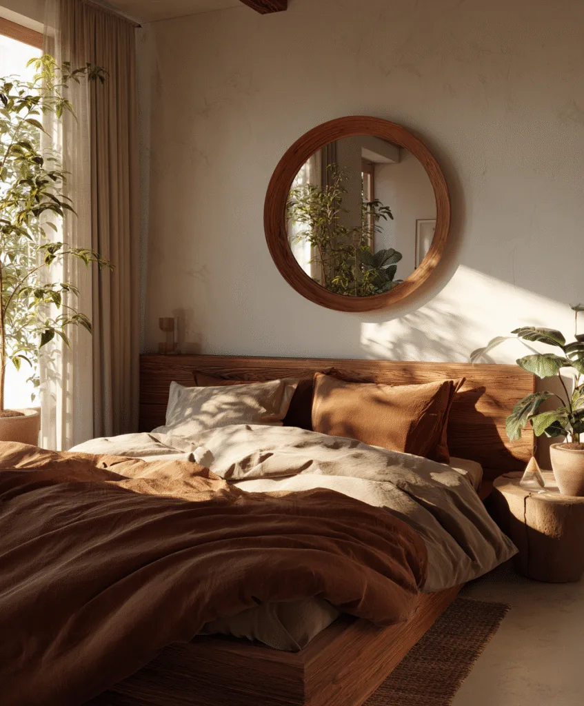 My bedroom is small, so adding a mirror was a sneaky way to make it feel bigger and brighter. I went with a soft-edged wooden frame to keep it cozy.