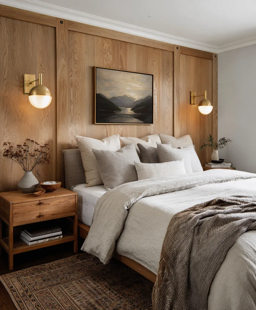 You don’t have to cover the whole wall. Just a horizontal panel works. It’s like a soft “headboard” effect, even if you don’t have one.