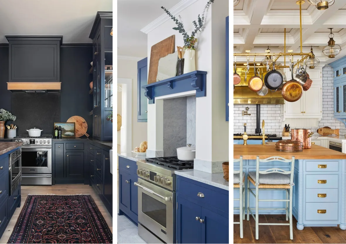 Blue cabinets bring both style and personality to your kitchen, whether you prefer bold or soft shades.