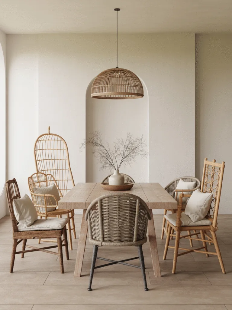 So go ahead, add that rattan pendant, layer those rugs, and let your dining room reflect your beautiful, eclectic style.