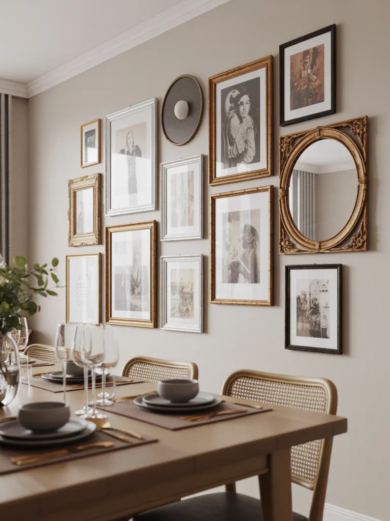 A boho dining room needs art that feels lived-in and layered. A gallery wall is a great way to show off your personality.