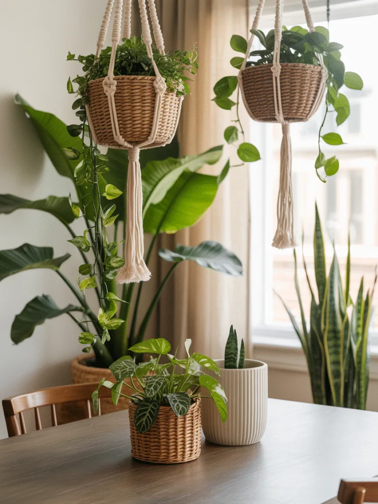 - Go for low-maintenance picks like pothos, snake plants, or ZZ plants.