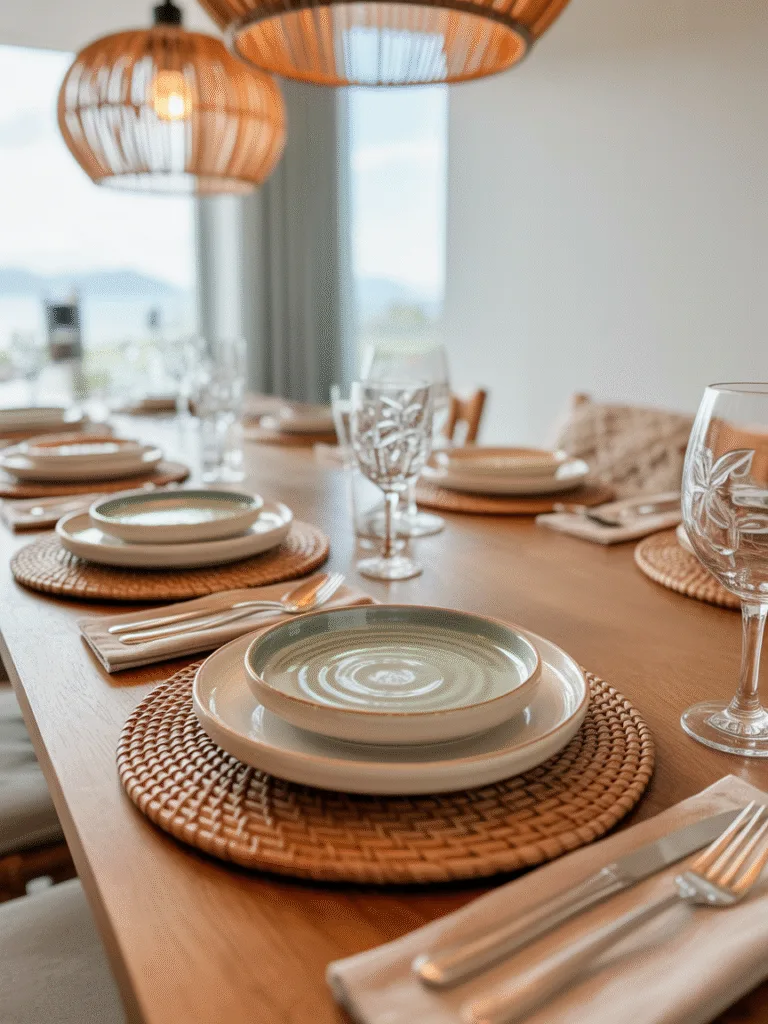 - Top the table with candles, trays, and textiles for a dreamy dining vibe.