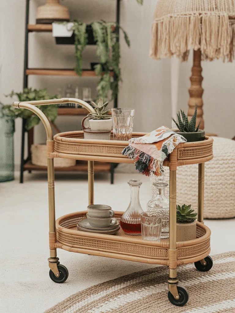Boho style thrives on character—and nothing brings more charm than a well-decorated vintage bar cart or tea trolley.