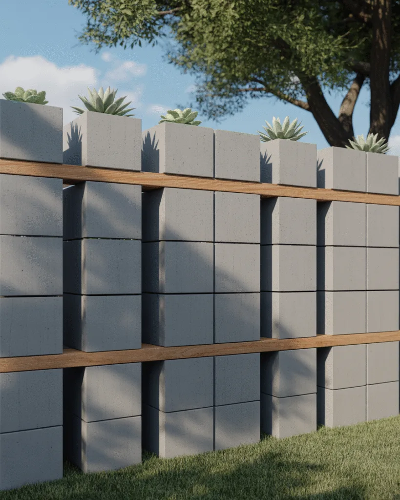 Hear me out—plain concrete blocks may sound a little boring, but with some imagination, they make for a super unique and solid fence that can double as plant holders or seating!