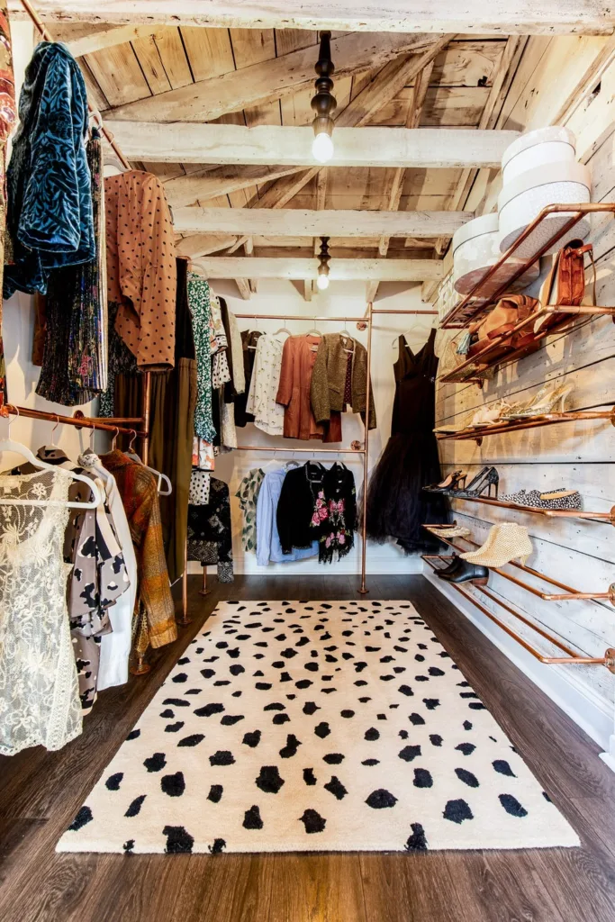 Copper pipes are a creative way to add style and utility to your closet. I’ve used them for hanging clothes and creating sturdy, custom shelving for shoes.