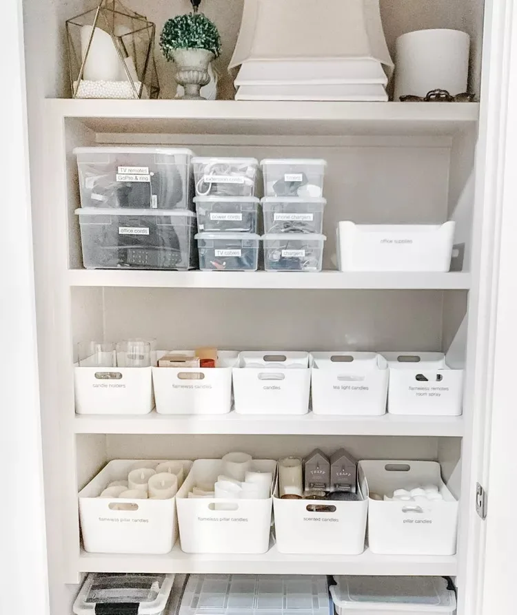 Matching bins keep my closet looking polished and functional. I use them for toiletries, tech cords, and even candles. They’ve made such a difference by hiding clutter without turning it into disorganized chaos.