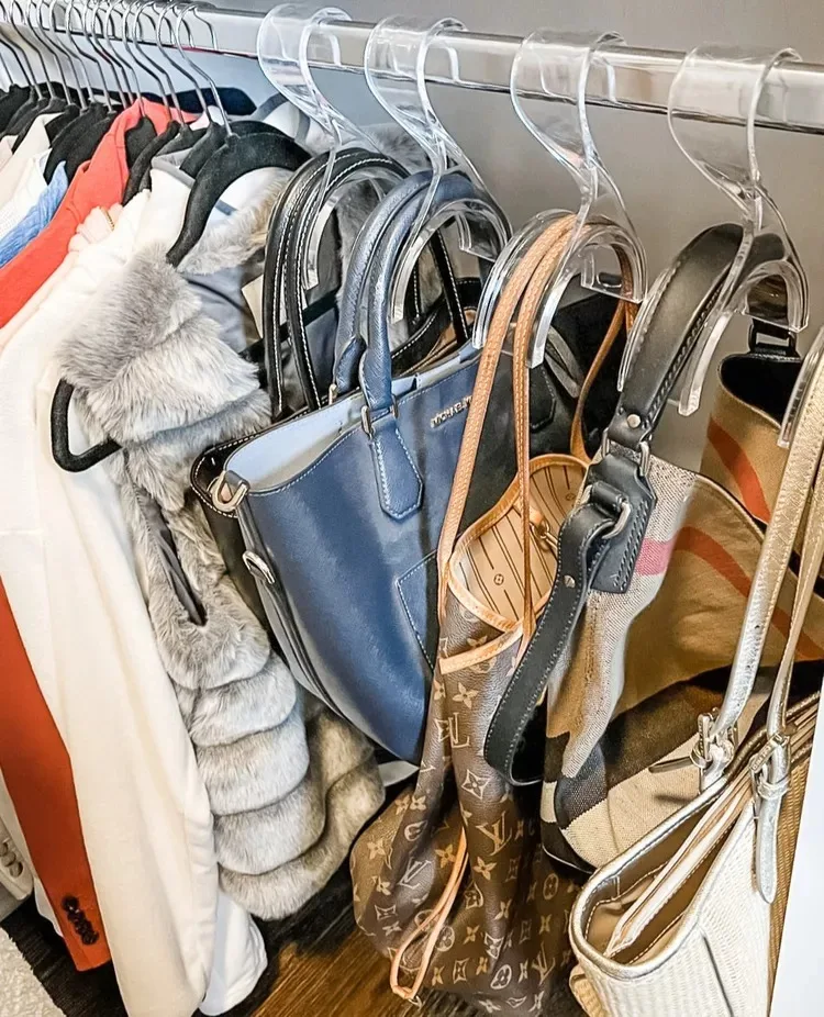 I used to hide my handbags in the back corners of the closet until I invested in a hanging organizer. Now, they stay upright, well-placed, and easily accessible.