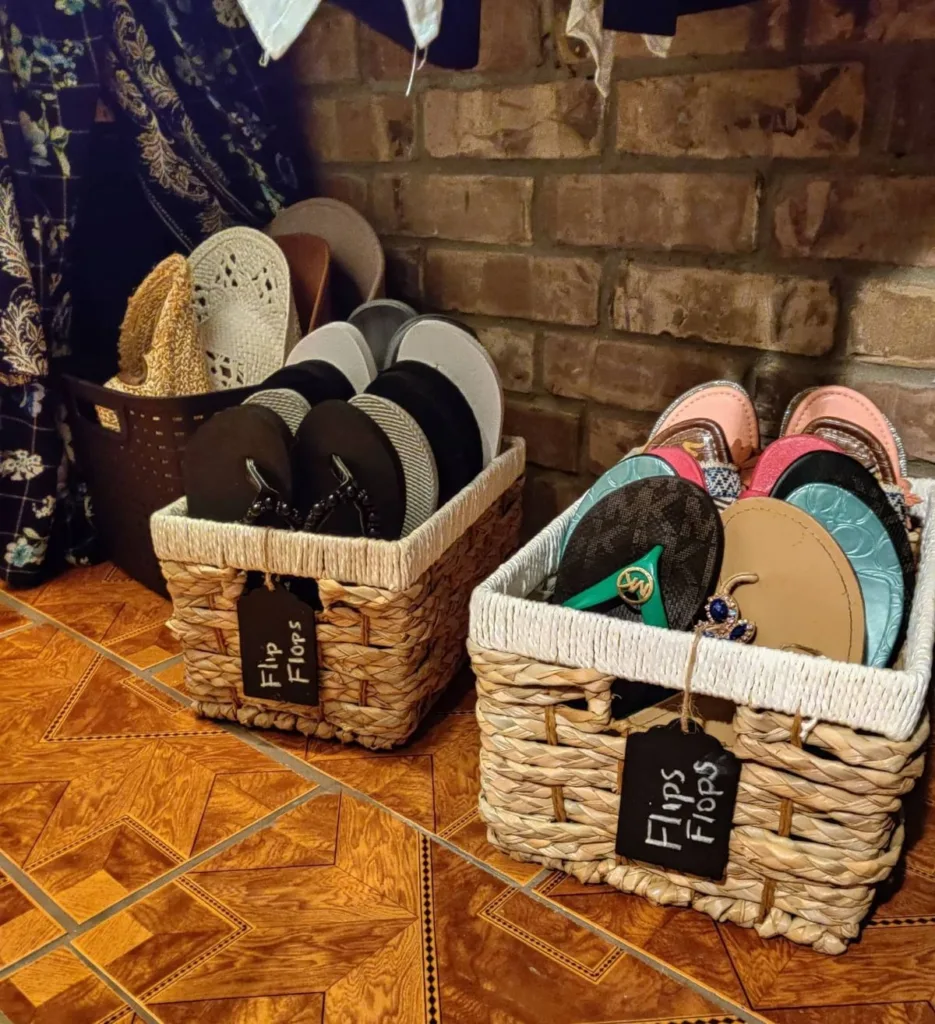 Decorative bins are fantastic for storing shoes you don’t use daily, like seasonal sandals or hiking boots. I love woven bins with handles—they’re durable and stylish.
