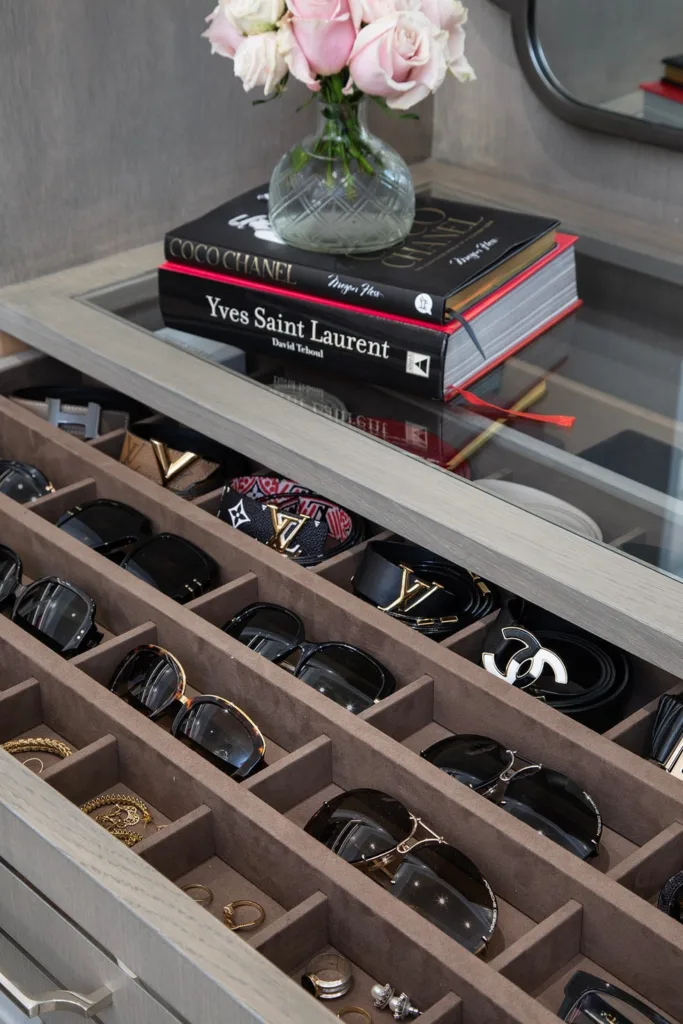 Keeping small accessories organized takes the stress out of getting ready. Dividers ensure your glasses, watches, and bracelets have dedicated spaces.