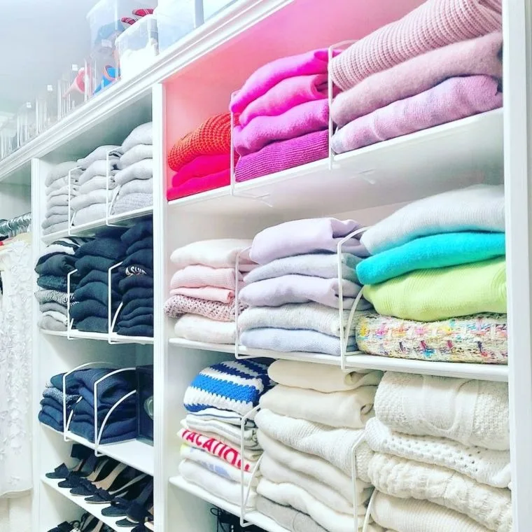 Shelf dividers have completely transformed my closet. I used to struggle with piles of clothes that would spill over into each other, but now, everything has its place.