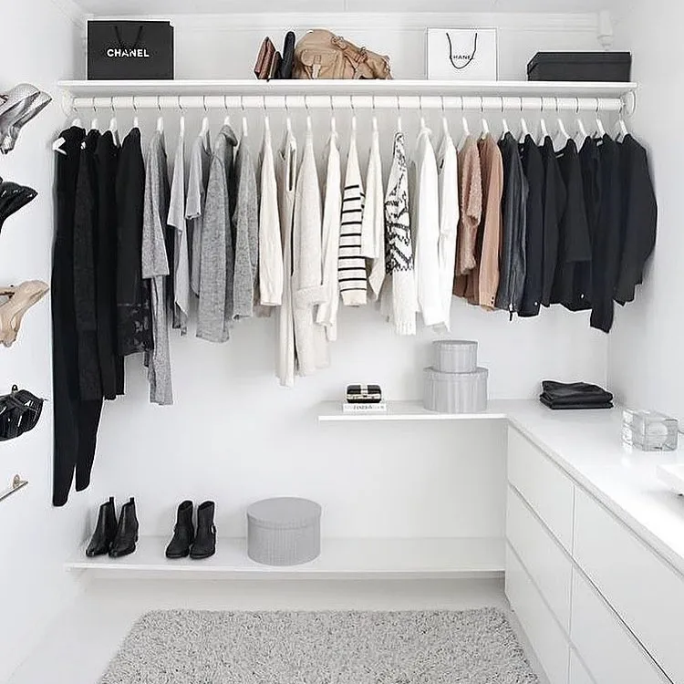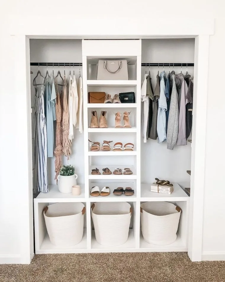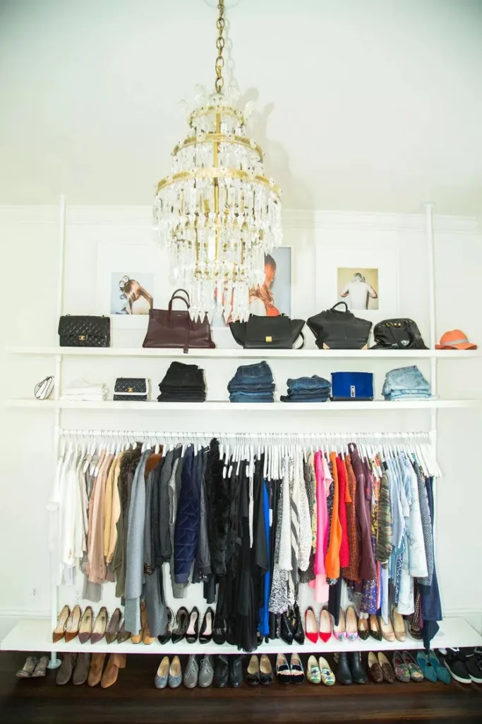 This type of shelving is affordable, simple to install, and ideal for shoes, bags, and accessories. It adds a touch of openness and makes your closet feel more spacious, too.