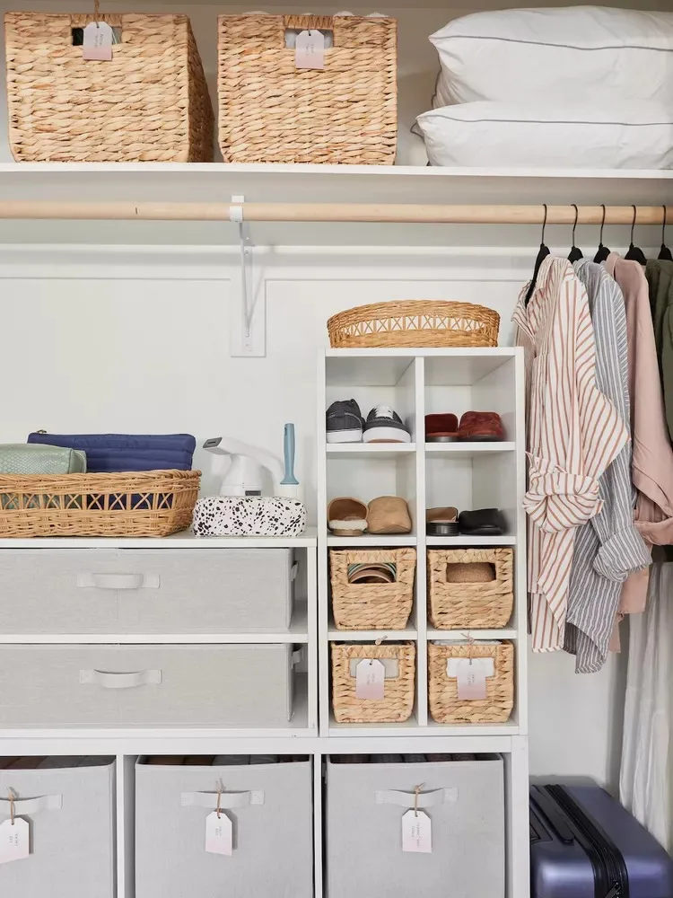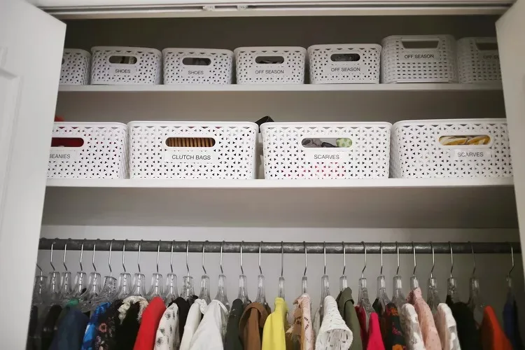 Whether it’s shoes, scarves, or bags, putting labels on your baskets will keep your closet organized, and everything within easy reach. Trust me, it’ll save you from unnecessary clutter!