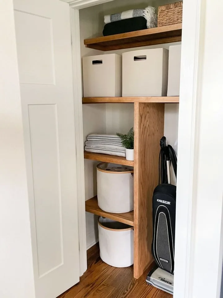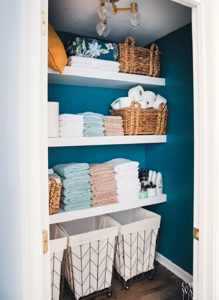 Floating shelves in a linen closet? Genius! I used them in mine, and it completely transformed the space. The open design makes it easy to access towels and toiletries, and it looks fantastic too.