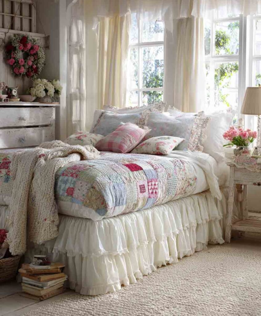 - Pair with ruffled pillows and floral linens.