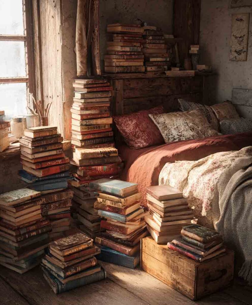 Bold Takeaway: Books = the cozy soul of every cottage core bedroom.