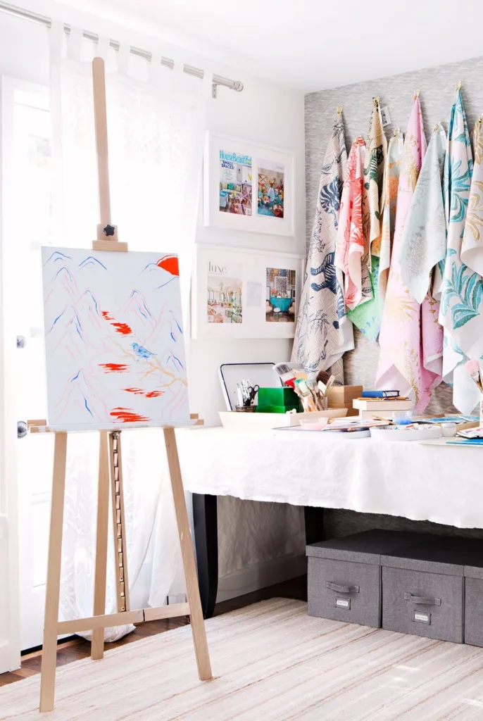 Source: Karyn MilletWhen it comes to keeping your craft room flexible, temporary storage is a lifesaver. I’ve found that using an easel for both display and storage works wonders.
