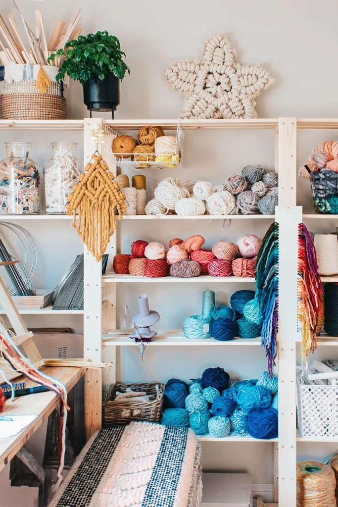 Not only does it keep your yarn from tangling, but it also adds a touch of beauty to the room. I’ve set up a colorful yarn shelf that helps me stay organized and inspired.