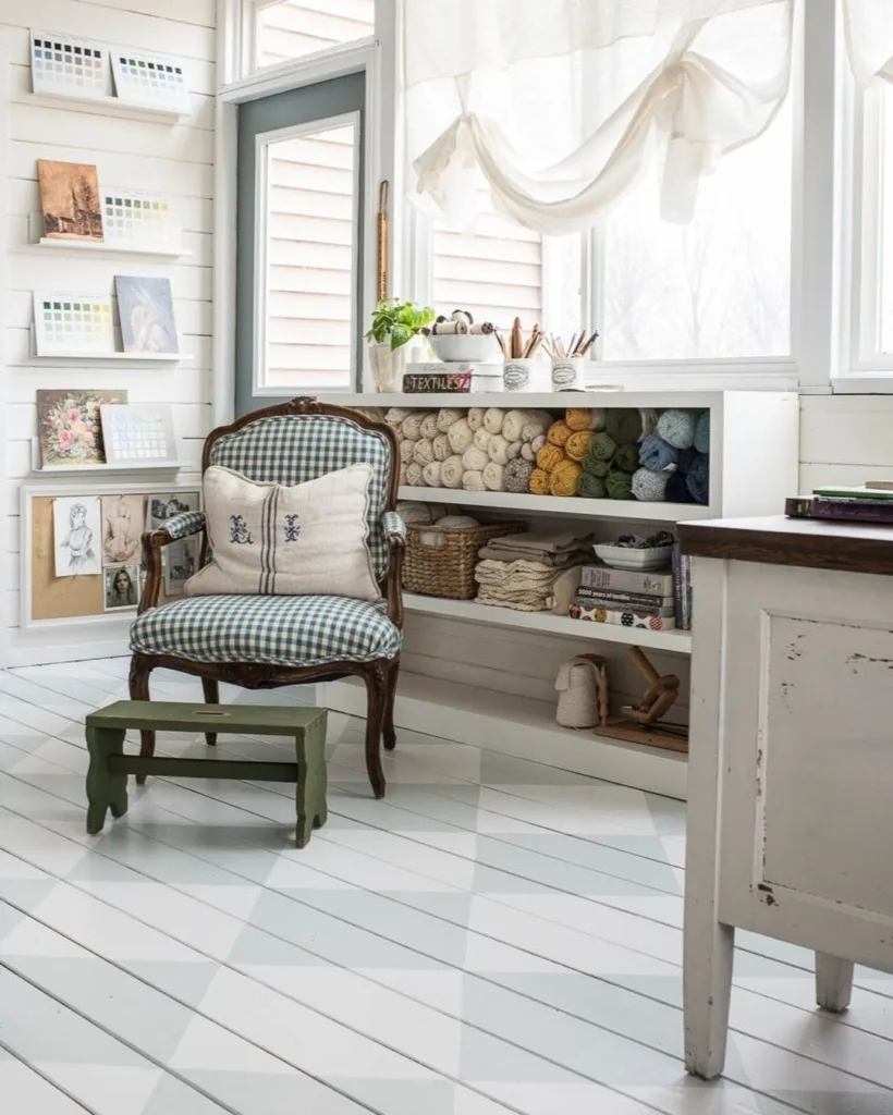 When my craft room was on the smaller side, I turned a corner into a mini workspace, and it worked wonders. With shelves above and a compact desk below, you can keep everything organized and within reach.