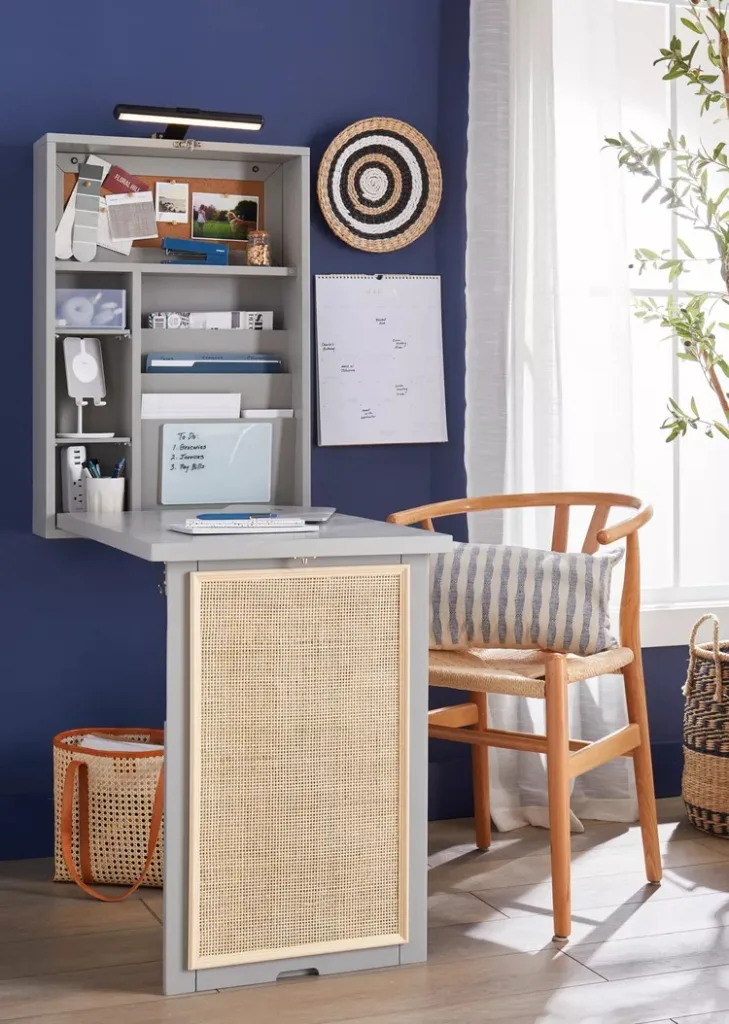When I’m not using it, I just fold it up and keep things neat and tidy. The desk in the image is the perfect example of how space-saving furniture can help you stay organized.