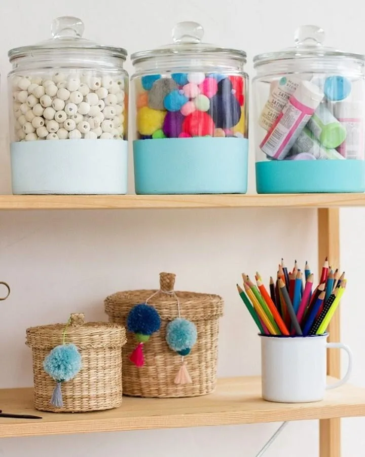 If you’re like me and have tons of little supplies, this simple storage solution will keep everything in its place and reduce the clutter.