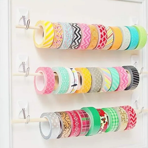 Source: Scattered Thoughts of a Crafty MomRolls of paper, fabric, and tape are always a challenge to store. I used to stack them, but they would just get in the way!