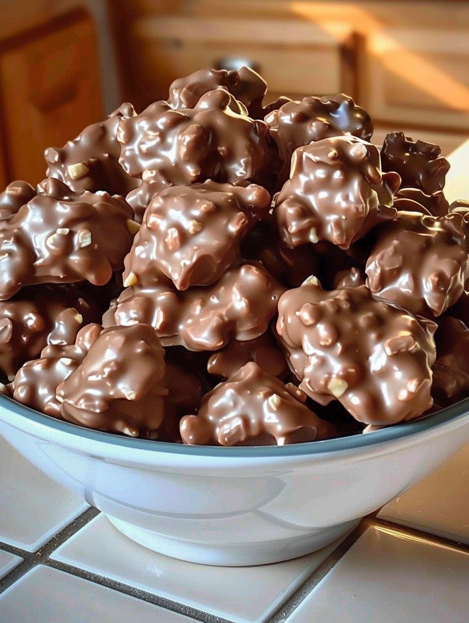 The slow cooker gently melts the chocolate, creating rich, glossy peanut clusters that taste like something from a candy shop — but with very little effort.