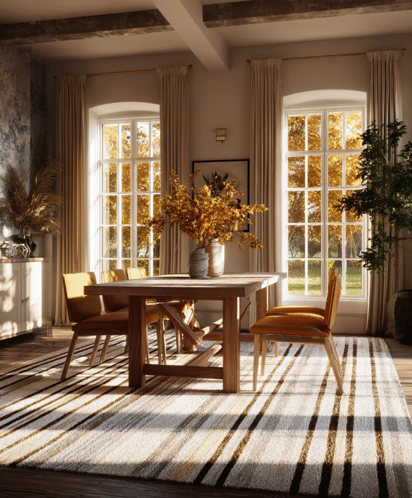 I lean toward wide, low-contrast stripes in warm tones. They feel cozy but organized. You can mix them with almost anything, solid chairs, wood floors, even patterned curtains.